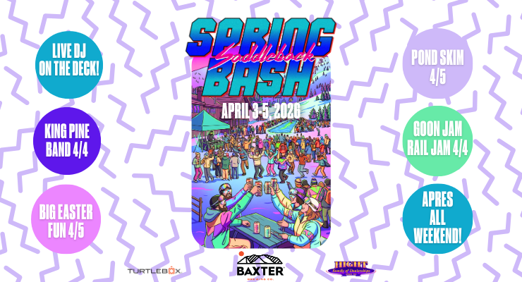 Fresh snow, soft turns, and three days of music, events, and energy across the mountain. Live music and DJs all weekend, @goongear rail jam on Saturday, pond skim on Sunday, plus Easter family fun mixed in. It’s the full Saddleback spring experience, skiing, community, and a party that builds all weekend long!